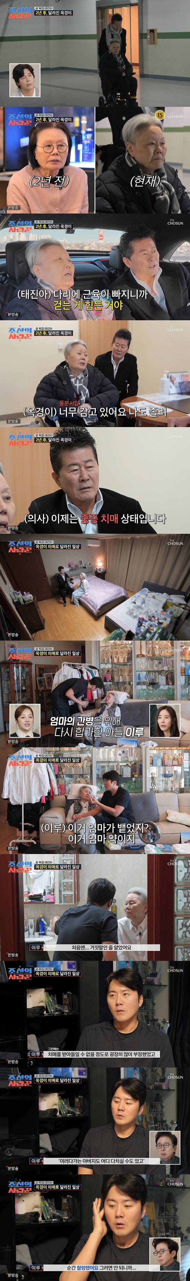 16일 방송된 TV CHOSUN '조선의 사랑꾼' 설 특집에서는 태진아♥옥경이 부부의 2년 전과는 확연히 달라진 치매 투병의 일상이 공개됐다.
