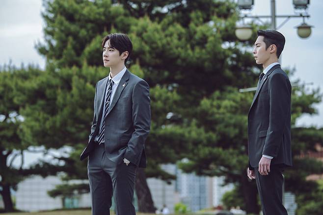 공개된 스틸은 강오 그룹 강중모 회장의 최측근 자리에 올라선 ‘한태오’(이재욱)의 모습으로 시선을 사로잡는다.