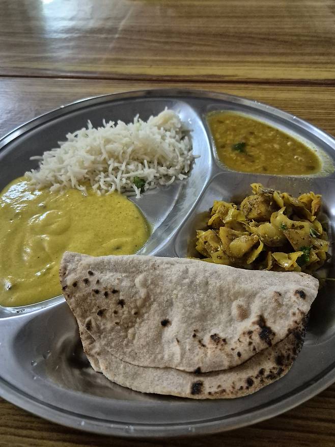 새벽 명상과 요가 후 이어지는 아쉬람의 식사는 소박하다. 인도식 쌀밥, 채소 카레, 렌틸콩 수프, 차파티(빵)가 기본이다. 매번 비슷한 메뉴지만, 시간이 갈수록 음식에 대한 욕심이 줄고, 내 몸과 마음은 점차 가벼워졌다. 땀에 젖은 옷을 손으로 빨래를 하고, 천천히 말리는 사소한 일상조차도 하나의 수행처럼 느껴졌다. 불편함 속에서 오히려 편안함을 발견하는 경험. 아쉬람은 그렇게 단순함의 가치를 가르쳐 준다.
