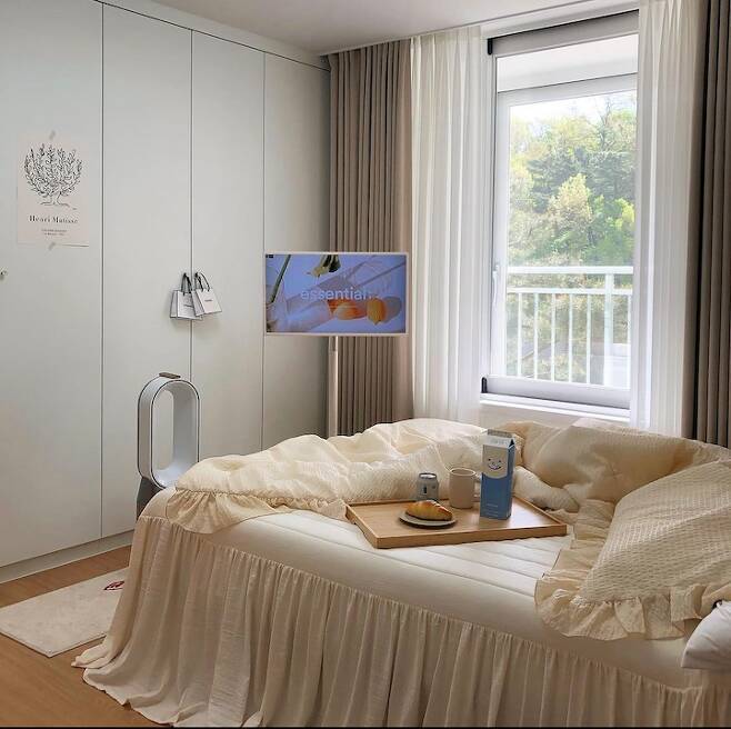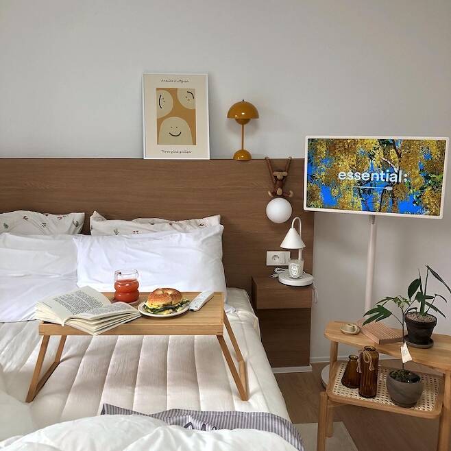 저희 집 안방이에요. 거실에 TV만 없지, 빔프로젝터에 스탠바이미에 ㅋㅋㅋㅋㅋ 이럴 거면 TV가 있는 게 나았을 수도 있어요ㅋㅋㅋㅋㅋㅋ🤣