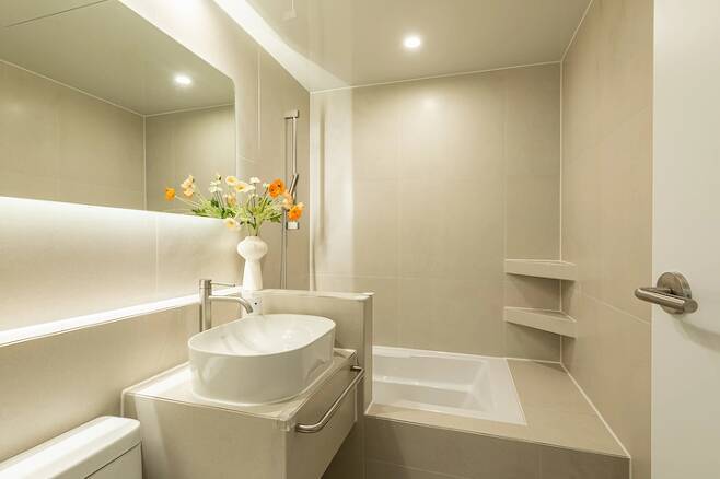 2. 좁은 욕실에 욕조를 넣고 좁아 보이지 않게 디자인하기