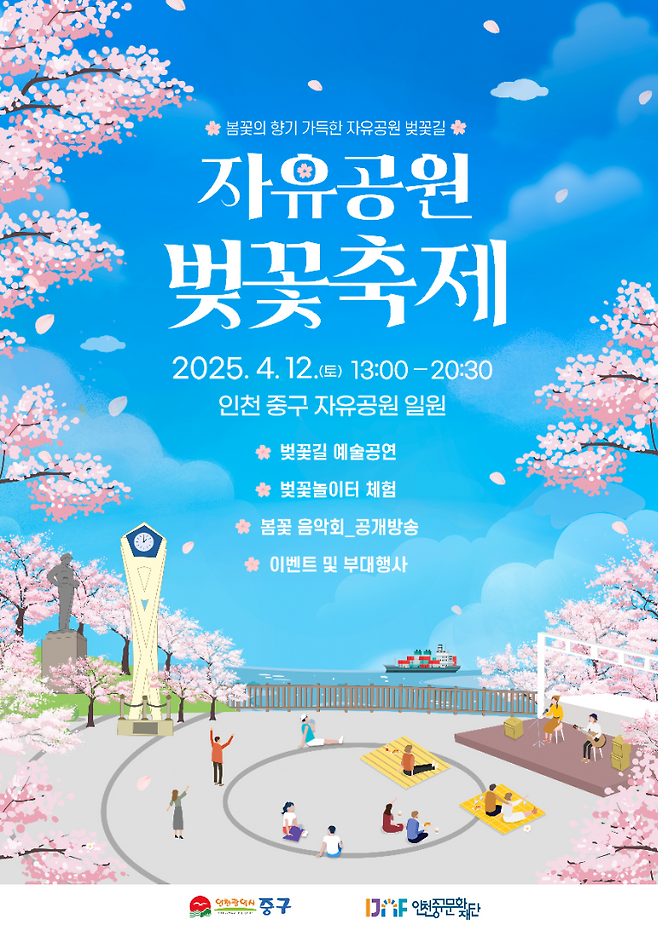 오는 4월 12일 단 하루 동안 개최되는 '2025 자유공원 벚꽃축제'는 인천을 대표하는 벚꽃 명소인 자유공원 산책길과 광장을 배경으로 다채롭게 꾸며진다.
