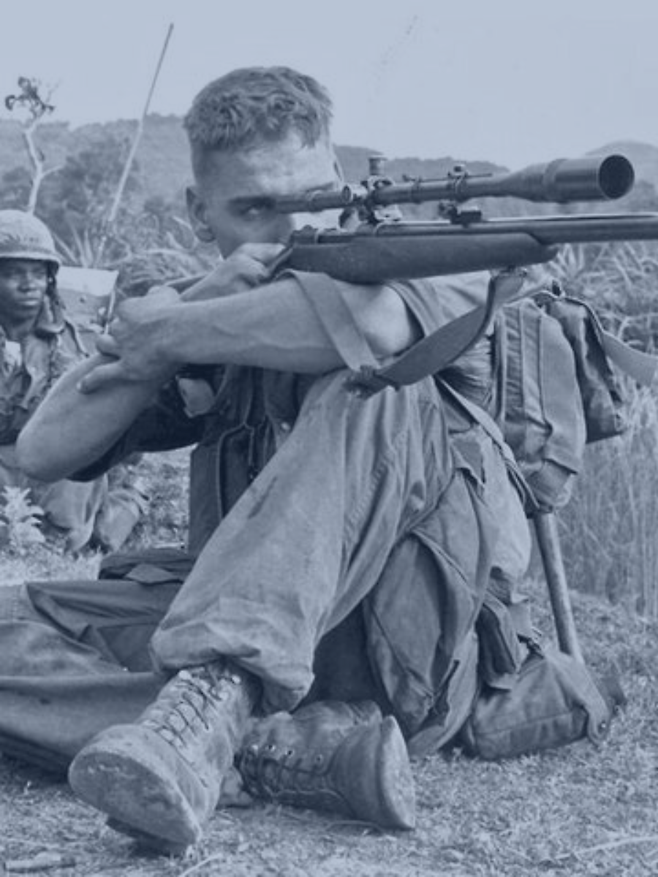카를로스 노먼 해스톡 2세(1942–1999), 닉네임 ‘화이트 페더(White Feather)’는 미 해병대 저격수 중에서도 가장 전설적인 존재로 꼽힌다.