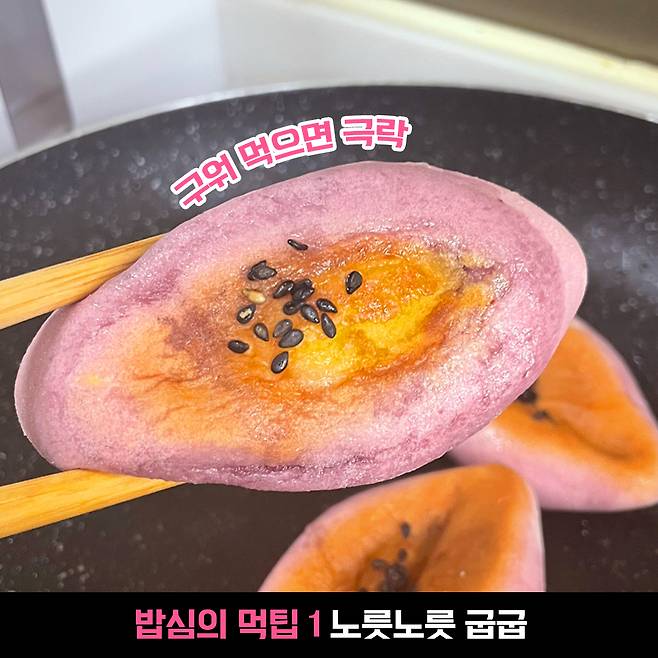 전자레인지에 돌려 따뜻하게 먹어도 맛있겠지만, 팬에 구워 바삭하게 먹는 게 더더 맛있을 것 같아요. 이왕 먹는 거 정성 한 스푼 더해서 더욱 맛있게 즐겨보세요.