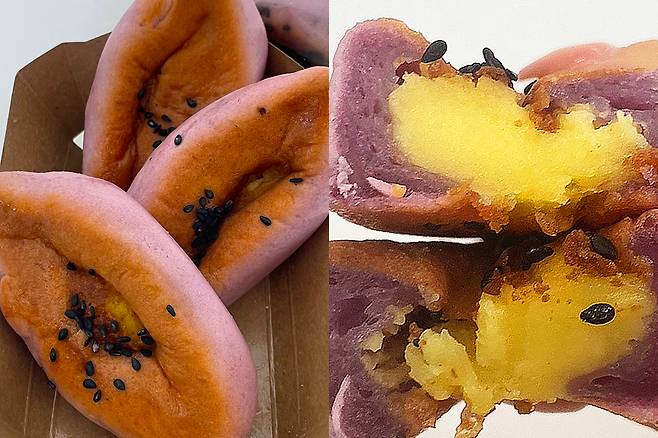 먹어봤을 때도 얼마나 쫀득쫀득하든지! 반죽 자체는 많이 달지 않고 담백한 맛이었는데요. 반죽 속 부드럽고 달콤한 고구마 커스터드가 있어서 담백하고 쫀득한 반죽과 아주 잘 어울렸어요.