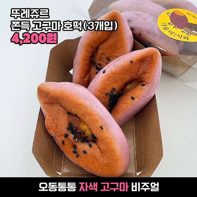 쫀득 고구마 호떡은 3개입이 1세트예요. 1세트에 4,200원! 개당 1,400원꼴로 볼 수 있겠네요.