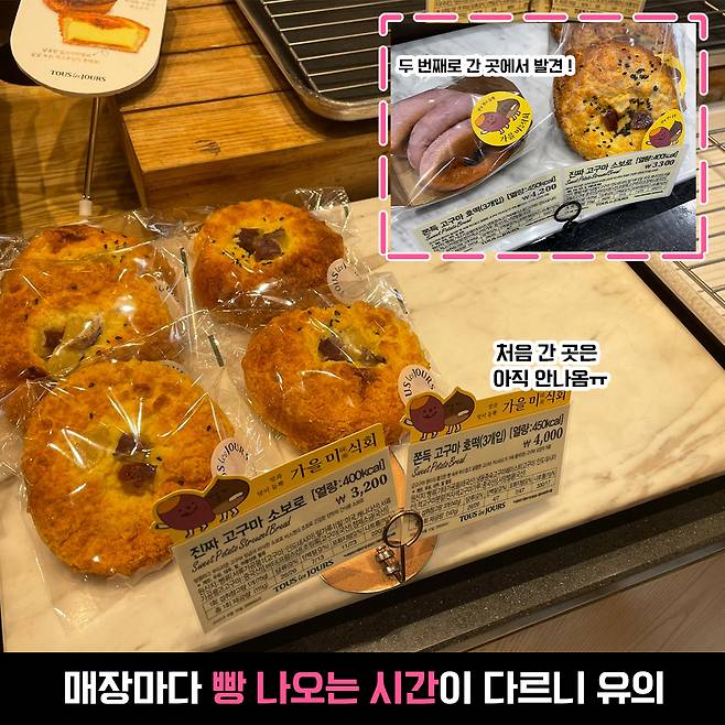 아쉬운 마음을 뒤로 한 채 고구마 소보로만 구매하고 나왔는데 이대로 포기할 수는 없어서 다음 매장으로 투어를 하게 됩니다. 두 번째로 간 곳에는 다행히 고구마 호떡이 있어서 얼른 겟 했어요!