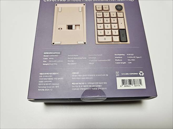 COX CKP01 PRO 3모드 기계식 넘버패드 스펙을 살펴보면 블루투스와 2.4Ghz 무선, 유선까지 모두 지원해 다양한 기기와 연결 가능하며, 윈도우는 물론 맥 OS, 안드로이드까지 모두 지원하고 있습니다.