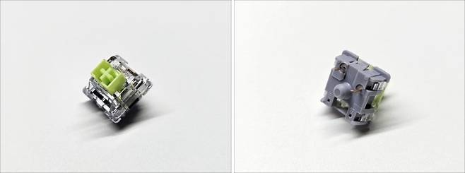 적용된 스위치는 후아노 사의 Sky 리니어 스위치가 적용되어 있으며, 5핀 핫스왑 소켓이 적용되어 있어 원하는 스위치로 교환 가능한 만큼 사용하는 키보드와 같은 스위치와 키캡으로 통일 가능합니다.