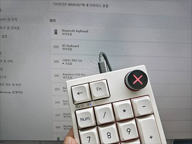 만약 자동으로 연결이 안 된다면 동글을 빼고 FN+- 스위치를 길게 눌러 LED가 깜빡일 때 동글을 연결하면 자동으로 페어링이 가능합니다.