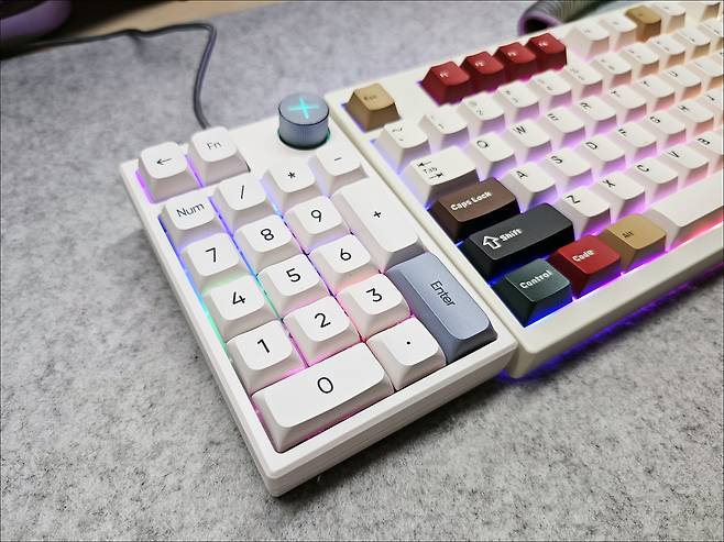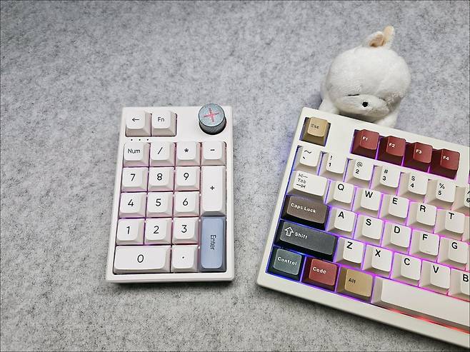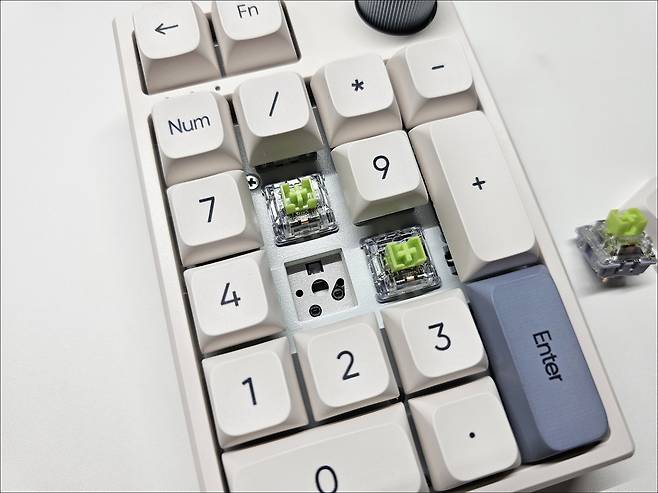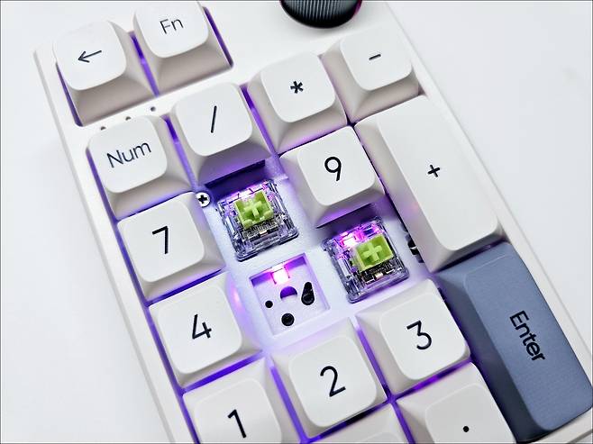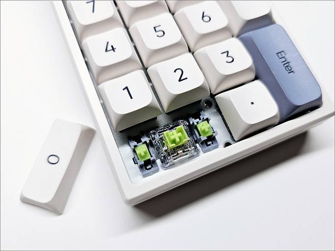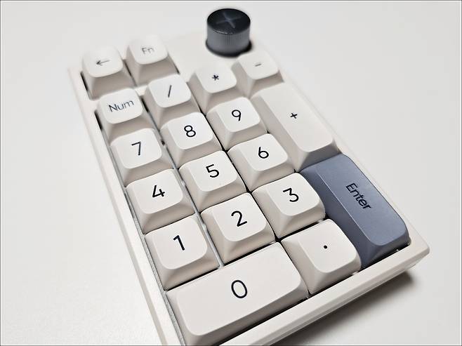 기계식 넘버패드인 만큼 타건을 해 보면 기계식 키보드의 느낌을 잘 살렸으며, 스테빌라이저도 기대 이상으로 잘 잡혀있어 잡소리 없이 사용 가능합니다.