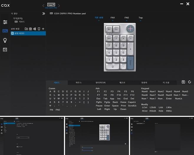 COX CKP01 PRO 넘버패드는 직관적인 사용자 인터페이스를 갖춘 전용 소프트웨어를 통해, 키 매핑, 매크로 설정, RGB 조명 커스터마이징 등 세밀한 조정이 가능합니다.