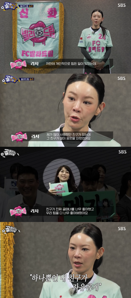 그러면서 "제가 많이 사랑했던 친구가 있었는데 그 친구가 많이 응원을 와줬다"며 "친구가 '골때녀'를 너무 좋아했고 우리 팀을 좋아해줬다"고 세상을 떠난 절친 이민을 추억했다.