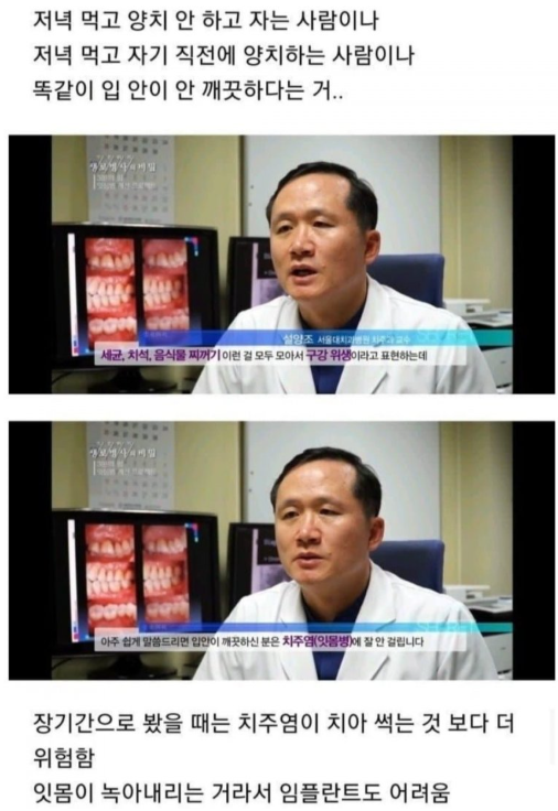 자기 직전에 양치하는 사람들의 충격적인 결과