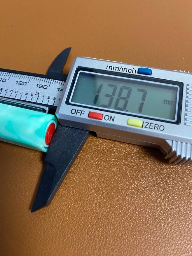 캡은 아마조나이트 특유의 녹색 대리석 질감으로 마감되어 깊이가 있습니다. 처음 볼 때는 저렴한 싱크대 대리석 같이 보였지만 조명에 비추어 보고 자주 보니 자연스러운 마블링 컬러가 오묘합니다. 하지만 솔리드한 컬러가 아니고 무게감있는 색이 아니기 때문에 호불호는 있을 것 같습니다. 캡의 끝과 클립은 금속으로 마감되었고 끝에는 트위스비 각인이 보입니다. 크롬 메탈도 좋지만 로즈 골드의 조합도 괜찮을 것 같습니다.