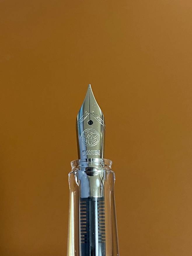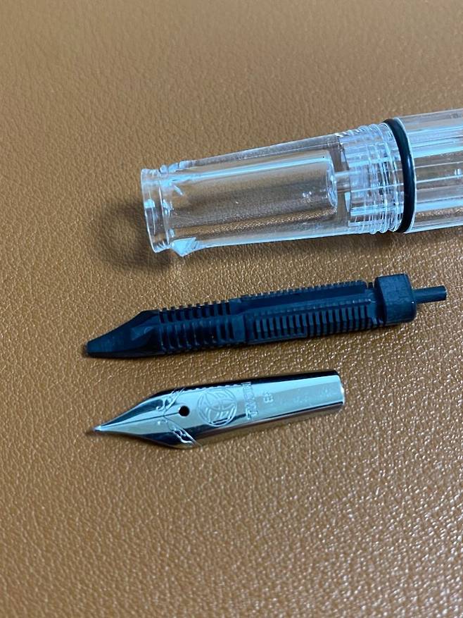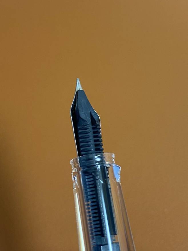 트위스비 에코의 펜촉은 선택지가 많습니다. 가장 얇은 것은 EF이며, F, M, B, 캘리촉까지 5가지 종류가 되므로 원하는 굵기로 선택이 가능합니다. 저는 EF 닙을 선택했는데요 제가 딱 좋아하는 굵기네요. 서명을 할 때만 굵은 펜이 편하지 실제 글을 쓸 때는 세필이 좋더라고요. 펜촉의 디자인은 날렵하니 매끈하게 잘 생겼습니다. 닙 표면에는 굵기가 표기되어 있습니다. 피드도 닙의 팁까지 길게 붙어 있어서 잉크 마름에 덜 할 것 같습니다. 펜촉을 분리 교체가 쉬워서 펜촉만 구매하면 다양한 환경에서 사용할 것 같은데 판매하지 않네요. 국내 뿐 아니라 트위스비 본사에서도 펜촉만은 판매하지 않습니다. 다이아몬드나 VAC 같은 모델은 닙만 판매하는데 말이죠.