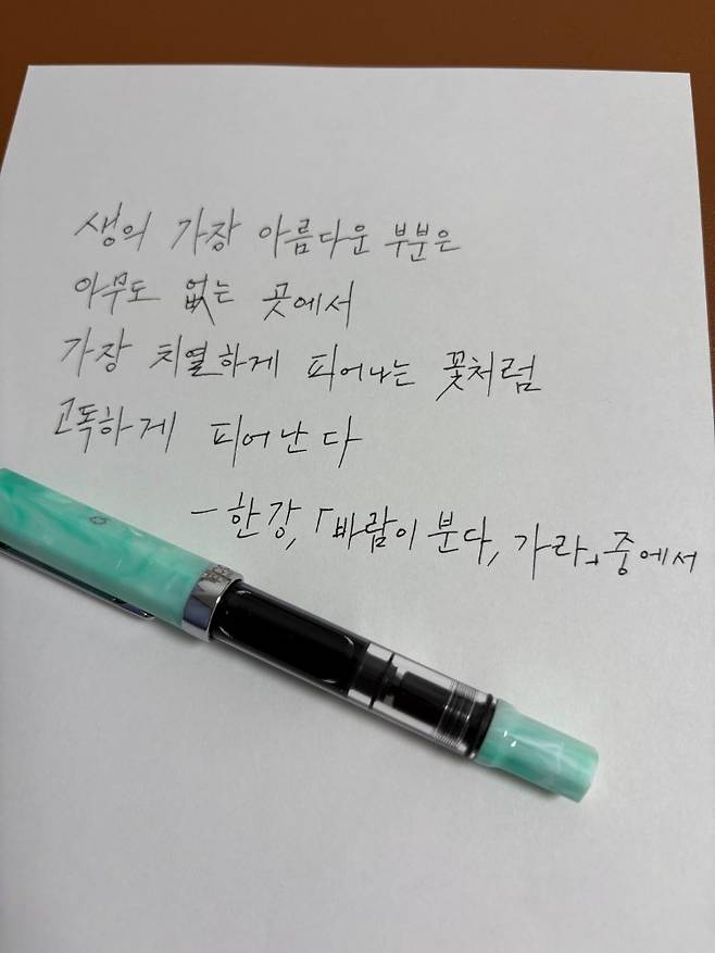 그래서 저는 시작을 홍디안 만년필로 시작했습니다. 물론 언제인지 모를 때부터 가지고 있었던 라미나 파이롯트 만년필도 있지만 새로 시작하는 마음으로 홍디안 만년필로 제가 어떤 스타일을 좋아하는지 파악했고 두번째로는 입문 만년필의 정석이라는 대만의 트위스비 만년필을 사용해 봤습니다. 사용해 보니 왜 트위스비를 입문 만년필이라고 부르는 지 알겠더라고요.