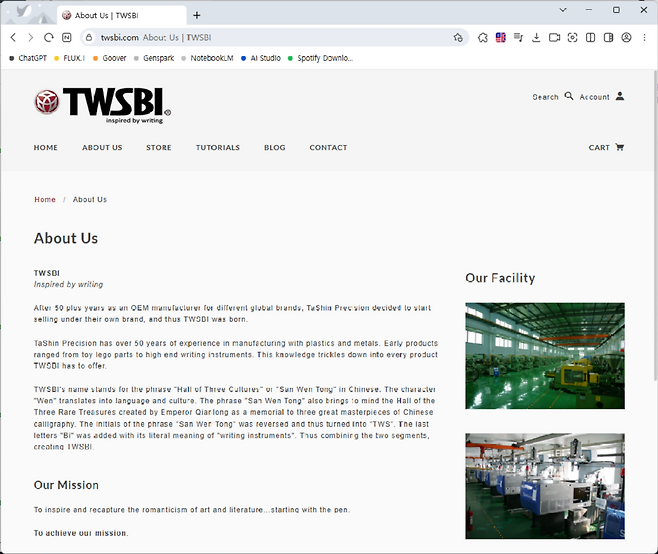 만년필에 대해 관심이 있으시다면 트위스비를 잘 아시겠지만 저처럼 만년필 문외한을 위해 트위스비에 대한 조사를 좀 해 봤습니다. 트위스비는 대만의 대표 만년필 브랜드로 대만 뿐 아니라 전세계적으로도 잘 알려진 회사입니다. 트위스비는 처음부터 만년필을 제조하지 않았다고 합니다. 처음에는 문구나 장난감의 부품을 납품하는 업체로 플라스틱이나 금속 가공의 노하우가 있어서 자체적으로 만년필을 만들기 시작한 것이 트위스비입니다. 모 회사의 역사는 50년이 넘었지만 트위스비로는 15년이 넘는 구력을 가지고 있습니다. 그래도 일만 시간의 법칙이라고 십년을 한 우물을 팠으니 기본기는 충분하죠.