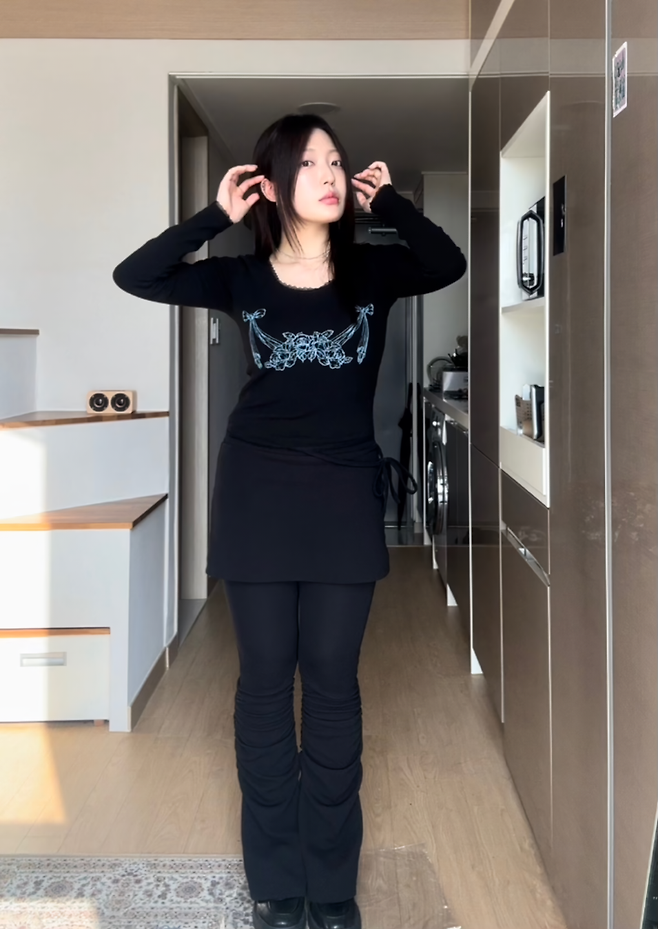 빈티지 하면서 발레 코어 한 방울 들어간 올 블랙 코디˘◡˘