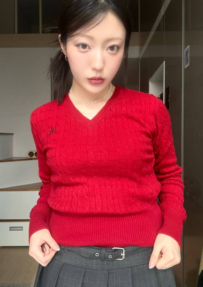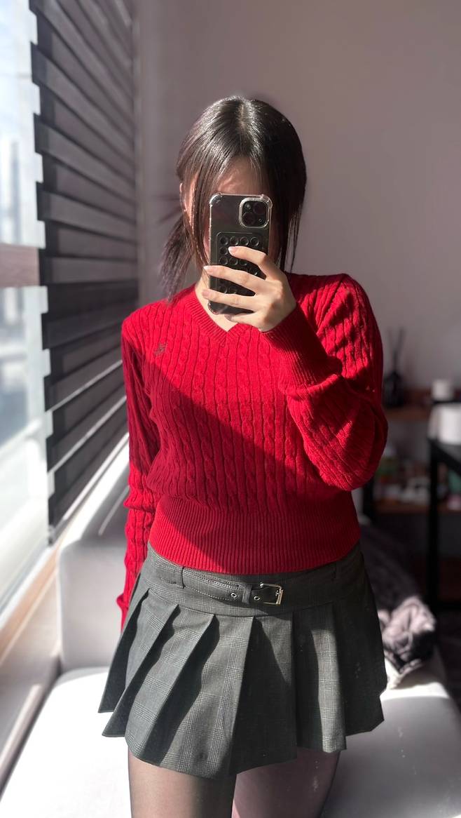 빨간색 크롭 니트가 너무 마음에 들었어