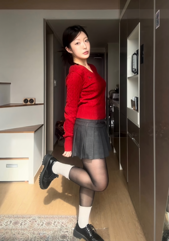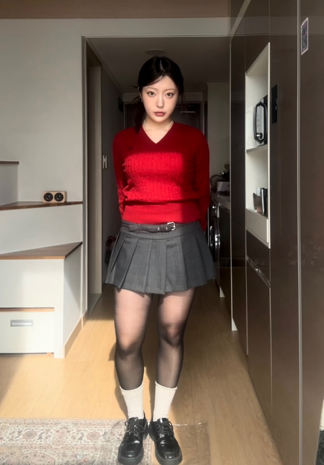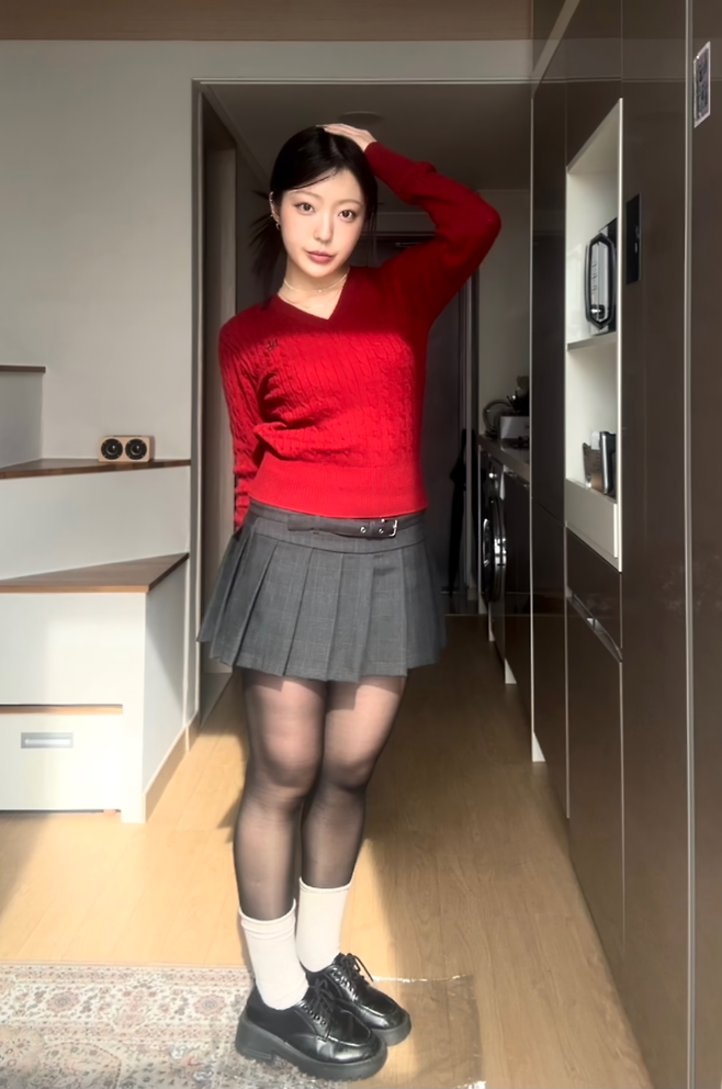 빨간색 니트를 활용한 프레피룩이야!
