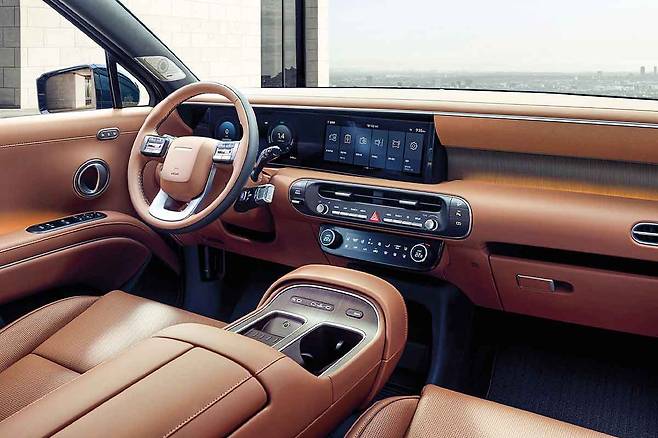 실내는 11인치 디지털 클러스터와 17.7인치 인포테인먼트 디스플레이를 적용하며 전자식 칼럼 기어 레버로 하이테크한 감성을 강화했다.