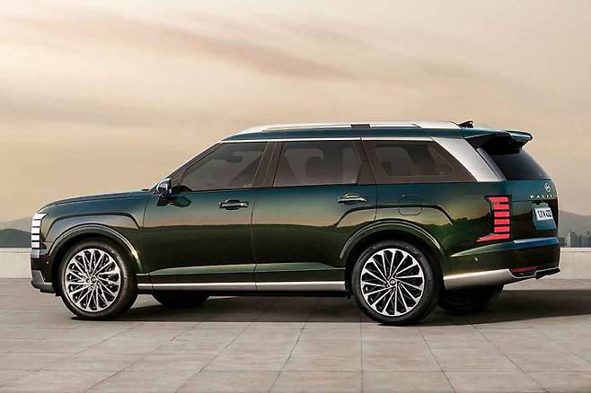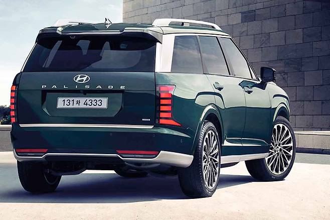 2세대 팰리세이드는 수평적이고 깔끔한 디자인이 특징이다. 블록형 라디에이터 그릴과 수직형 LED 헤드램프를 적용해 웅장한 느낌을 강조하며 측면부는 더 길어진 차체로 안정적인 비율을 완성했다.