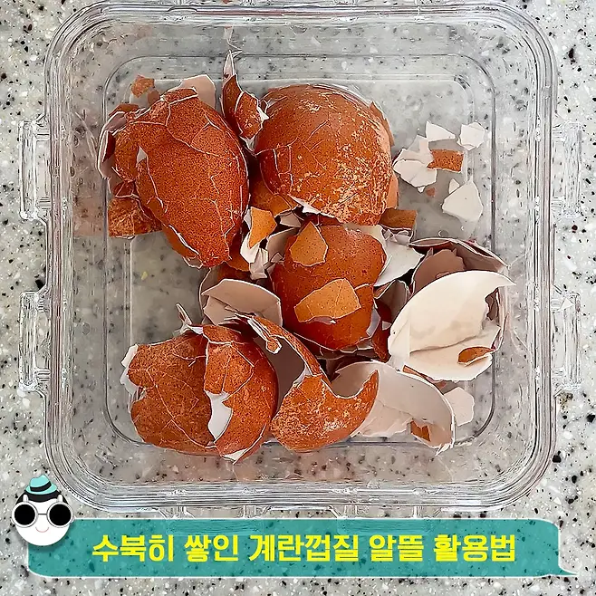 이제 그럼 뭐가 남았죠? 벌써 수북이 쌓인 계란껍질. 그냥 한번에 모아 잡쓰레기로 버려도 되지만, 이 밥심이 마무리까지 깔끔하게 계란 껍질 활용법도 알려드릴게요.