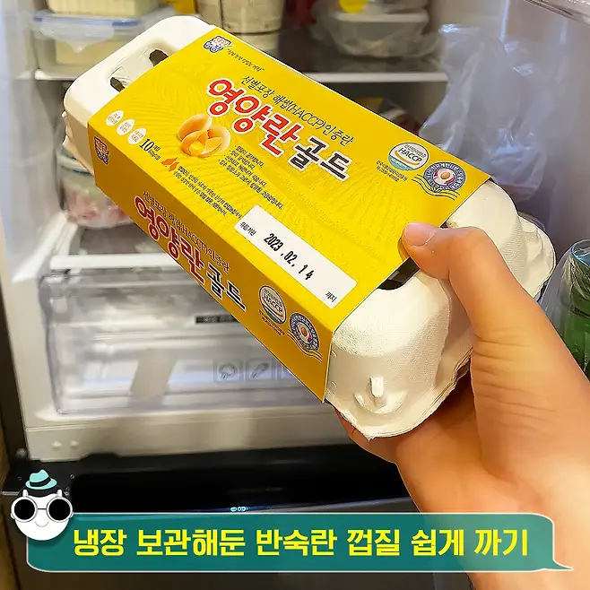 두 번째 방법은 삶아서 냉장보관 해 둔 반숙란 껍질을 까는 팁이에요. 언제 매일매일 삶고 있습니까 ㅋㅋ 이왕 삶는 거 한 번에 왕창 삶아서 두고두고 하나씩 꺼내먹는 게 남는 장사죠. 크크.