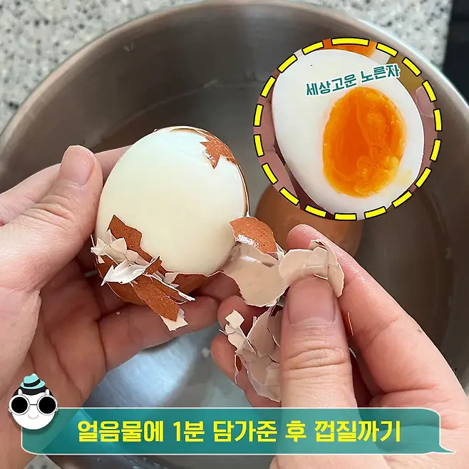 2) 자 그럼 1분 후, 껍질을 톡톡 두드려 벗기면? 끝.