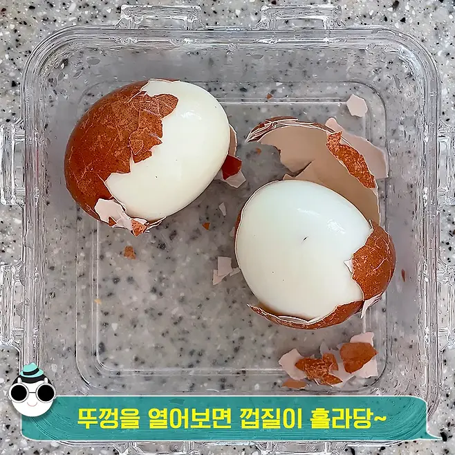 2) 자 그럼 1분 후, 껍질을 톡톡 두드려 벗기면? 끝.