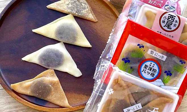 '생야츠하시(八ツ橋)'는 외국인에게는 낯선 비주얼의 디저트입니다. 생야츠하시는 교토의 대표적인 화과자인데요. 쌀가루 반죽에 설탕, 계피를 반죽해 찐 다음 얇게 펴 만듭니다. 반죽이 무척 얇은 편으로 무척 부드러운데요. 반죽 안에는 팥소가 들어 있는 게 일반 적입니다.