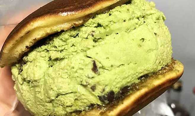 일본의 카페나 차 전문점에서는 특색있는 말차 디저트를 판매하고 있습니다. 교토에 있는 '오보로야즈이운도(朧八瑞雲堂)'에서는 말차 크림이 들어간 생 도라야키를 맛볼 수 있습니다. 많이 달지 않고 말차 향이 풍부한 게 특징인데요. 교토에서 큰 인기를 끌고 있죠.