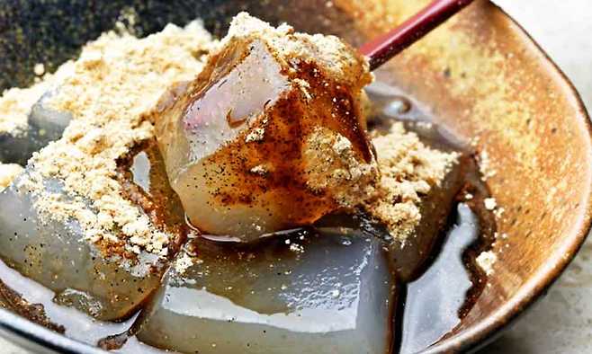 와라비모찌는 인절미 가루, 녹차 가루, 콩가루 등을 묻혀 먹습니다. 또한 흑설탕을 녹여 진하게 끓인 시럽을 곁들어 먹는데요. 쫄깃한 떡의 식감과 달콤한 맛이 어우러져 맛있게 즐길 수 있죠. 와라비모찌는 냉장고에 보관한 후 차갑게 먹으면 가장 맛있습니다.