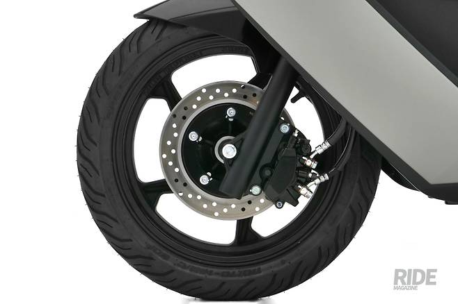 스쿠터의 최대 장점은 조작이 쉬우면서 잘 가고 잘 선다는 점이다. GS100에는 잘 달린 뒤 잘 서기 위해 전후방 모두 디스크브레이크가 장착되었으며 디스크 크기는 앞 뒤 각각 230mm, 186mm다. 서스펜션은 텔레스코픽과 스윙암 방식이 각각 채용되었으며 스트로크는 104mm, 100mm이다. 이 정도의 기계적인 조합은 승용과 상용, 어떤 사용자가 어떤 용도로 사용하더라도 무난한 성능을 보여줄 수 있는 수준이다.