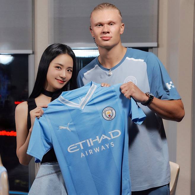 홀란은 앞서 지난 28일엔 자신의 SNS에 블랙핑크 지수와 함께 찍은 사진을 공개해 큰 화제를 뿌렸다. 사진 속 지수와 홀란은 맨시티 유니폼을 들고 카메라 향해 미소를 지어보이고 있다.