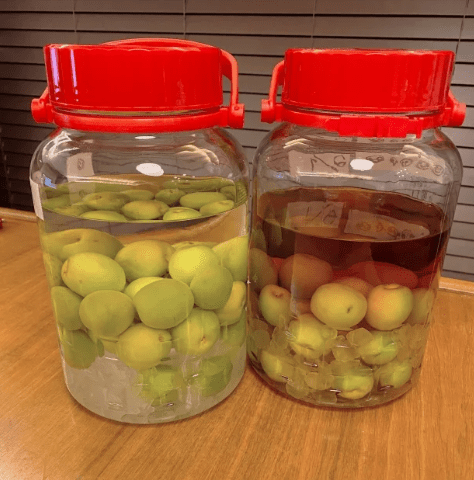 뚜껑을 닫고, 서늘한 곳에서 3개월 이상 숙성시킵니다. 중간에 매실이 위로 올라오지 않게 가끔 흔들어주세요.