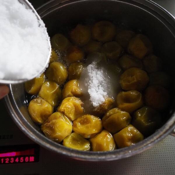 매실이 설탕에 완전히 잠기도록 위에 설탕을 덮어줍니다.