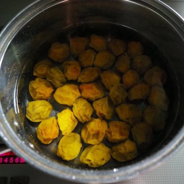 유리병이나 옹기에 매실, 설탕(또는 올리고당), 해조류, 생강, 대추, 감초를 함께 넣습니다.