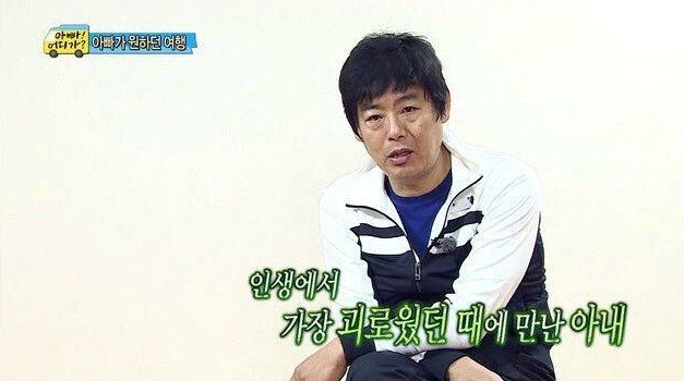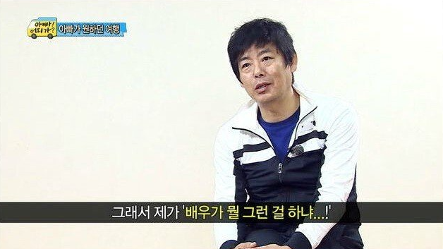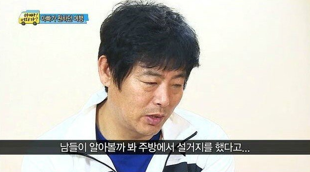 당시 성동일의 아내는 아침 프로그램 방송을 출연했던 상태였기 때문에 남들이 알아볼까 봐 주방에서 설거지를 하고있었던 것이다.