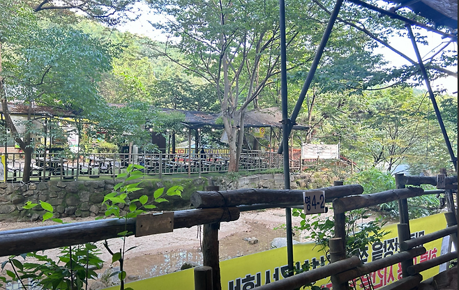 계곡 바로 옆 테이블에서 식사 가능