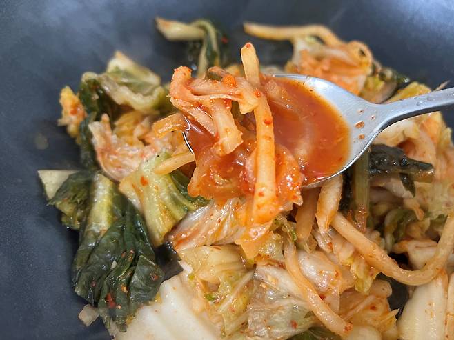고춧가루 1/2스푼을 넣어 주면, 신김치의 강한 신맛이 한 번 더 정리되면서 맛이 한층 부드러워집니다. 매운맛을 더하기보다는 김치 맛의 균형을 잡아 주는 역할이니, 양은 과하지 않게 조절하는 것이 좋습니다.