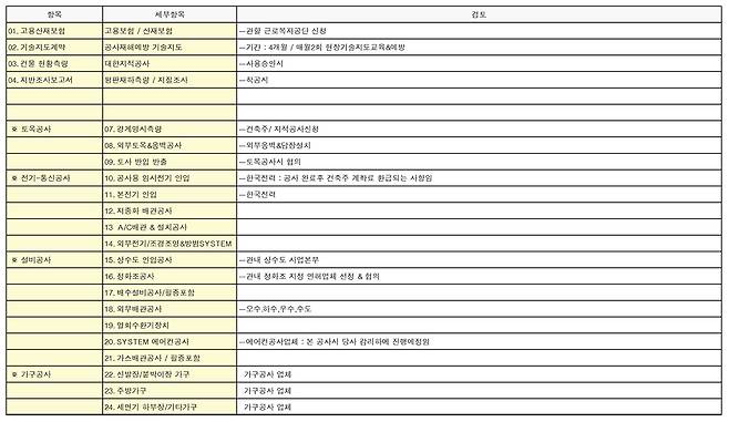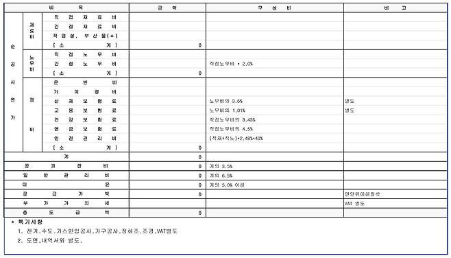 주택 시공 견적에 포함되지 않는 것들