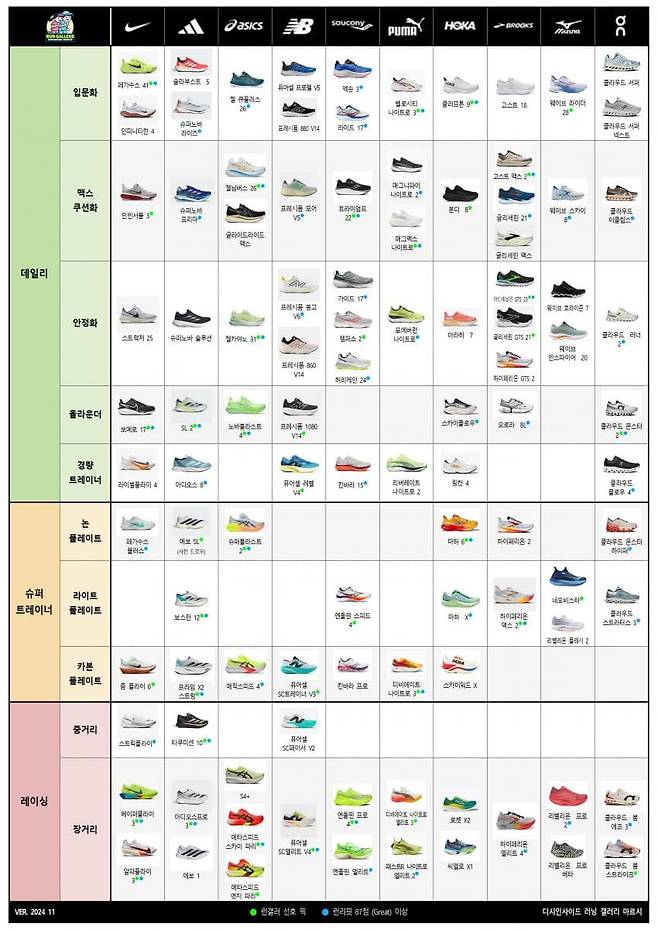 특징: 발볼이 넓고 가격 대비 성능이 좋으며 세일이 자주 있음.