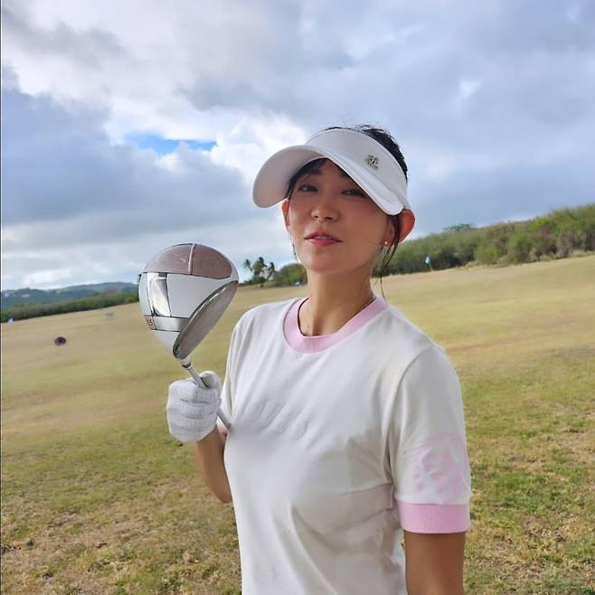 골프장에서는 화이트 베이스의 스포츠웨어에 핑크 포인트를 더한 깔끔한 골프룩을 연출하고 있다. 화이트 바이저 캡과 골프 글러브까지 완벽하게 매치하여 스포츠웨어의 기능성과 패션성을 모두 갖춘 완성도 높은 스타일링을 보여주고 있다.