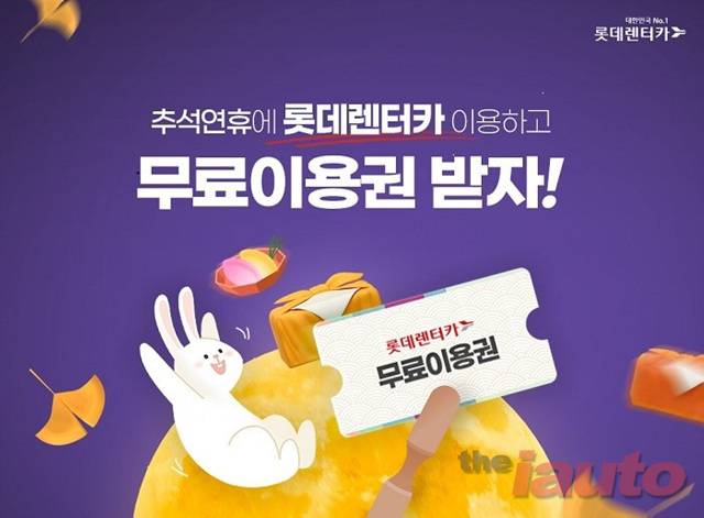 롯데렌탈(대표이사 사장 최진환)의 대한민국 No.1 브랜드 롯데렌터카가 추석 연휴 기간 차량을 대여하는 고객을 대상으로 1일(24시간) 무료이용권을 증정하는 ‘롯데렌터카 추석맞이 이벤트’를 진행한다고 밝혔다.