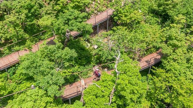 그래서 오늘은 남녀노소 누구나, 심지어 유모차와 휠체어를 이용하는 이들도 무리 없이 걸을 수 있는 특별한 숲길 하나를 소개한다. 바로 강원 평창의 발왕산 천년주목숲길이다.