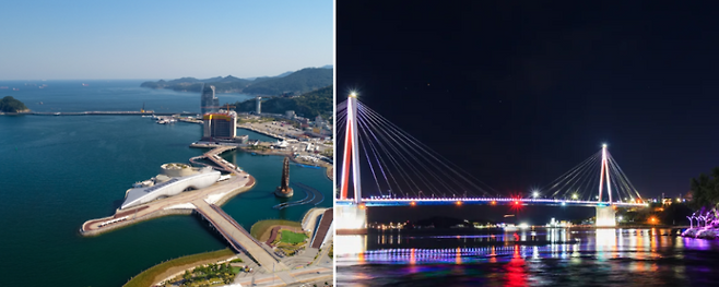 여수 해상공원은 가족, 친구, 연인끼리 여수 밤바다를 걷기 좋은 낭만의 거리로 꼽히는데요. 해안선을 따라 조성된 1.5km구간 시민공원으로 아름다운 여수 밤바다를 만끽 할 수 있는 최고의 휴식 공간입니다. 하멜등대, 해상케이블카, 돌산대교, 거북선 대교, 장군도 등이 한눈에 보여 밤바다를 거닐 수 있는 필수 데이트 코스라고 하네요.