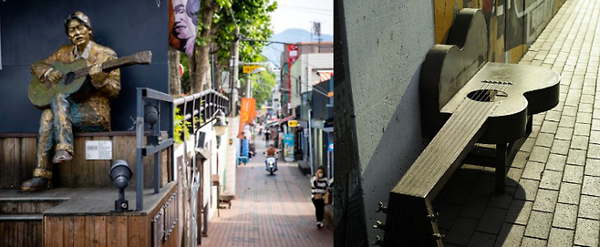 김광석 거리는 故 김광석 씨의 명곡들이 거리 곳곳에서 잔잔하게 흘러나오는, 김광석의 삶과 음악을 테마로 한 벽화 거리인데요. 거리 전체가 뉴트로 감성을 뽐내 포토존인 이곳은 먹걸리와 볼거리가 넘쳐난다고 하니 꼭 들러보시길 추천드립니다.