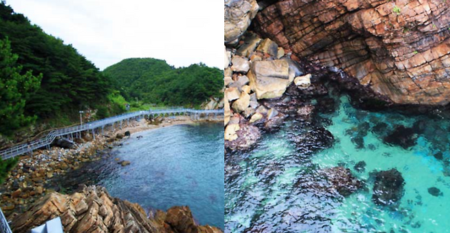 다음으론 아름다운 동해 해안을 따라 걸을 수 있는 바다 부채길을 추천드리는데요. 정동심곡 바다부채길은 정동진 썬크루즈 주차장과 심곡항 사이를 잇는 약 2.86km의 탐방로 입니다. 손에 잡힐 듯 가까운 바다를 두고 산책길 전체를 걷는데 70여 분이면 충분하다고 하는데요. 바닷가 기암괴석 절경을 천천히 걸어서 돌아볼 수 있으며, 코스 전체가 포토존으로 불릴만큼 아름답다고 합니다.